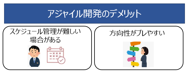 しかしアジャイル開発には以下のようなデメリットもあります。