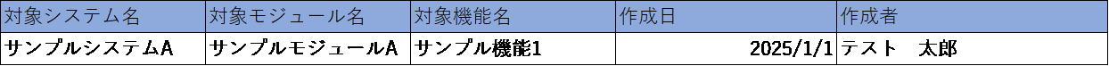 なお、仕様書は各機能で作成するため、上記の全システムをテストする場合「サンプル機能1~6」の計6通りのテスト仕様書が必要です。