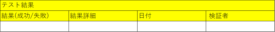 今までの枠(テスト前に記入する枠)と違い、「テスト実施者」が入力する枠なので、実施者が「テスト結果について記載漏れが発生しない」ように枠を作成します。